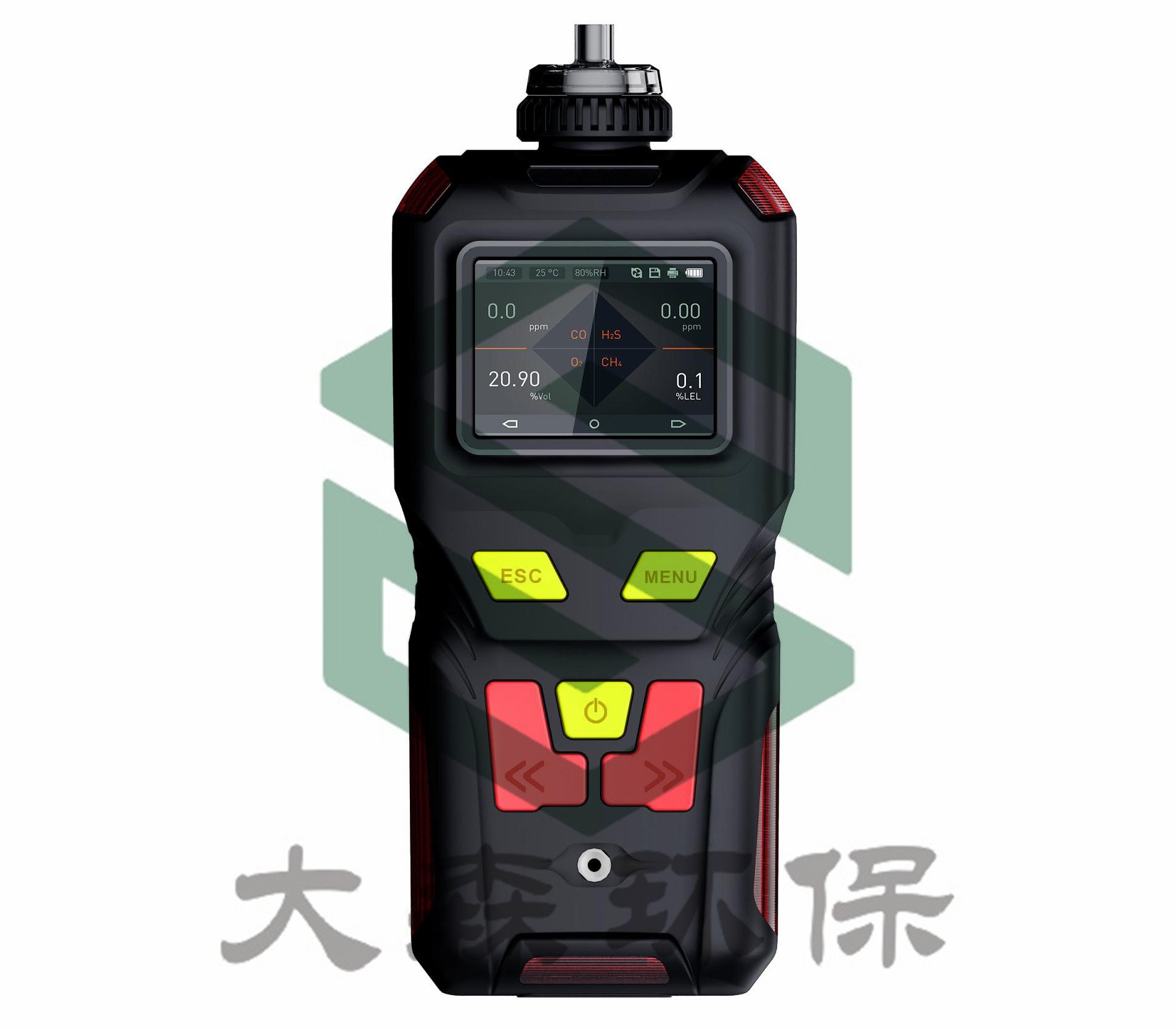 2.5寸高清彩屏,顯示實(shí)時濃度、報警、時間、溫度、濕度、存儲、通信、電量、充電狀態(tài)、濃度單位、
